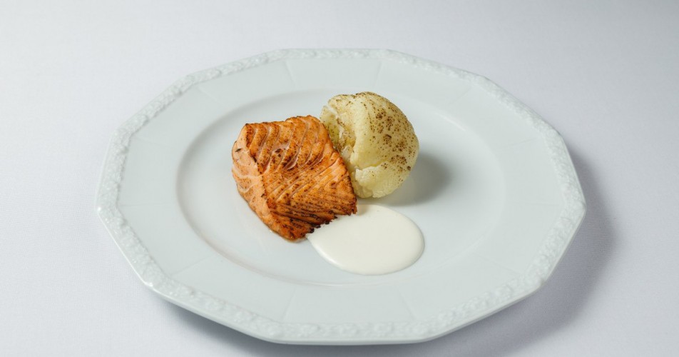 Лосось с цветной капустой и миндальным кремом