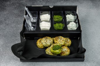 Стильное оформление - нужно просто снять коробку и вы получите готовую фуршетную линию из закусок и десертов