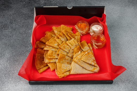 : блины гречневые 20шт, сметана, мед, апельсиновый джем