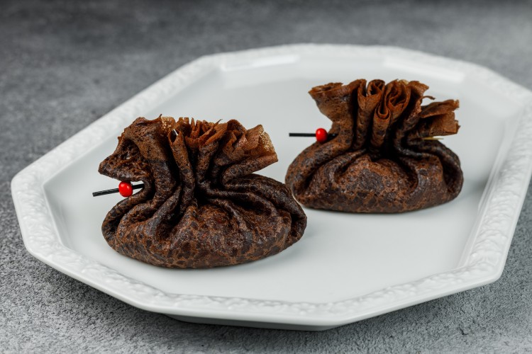 Блинчики шоколадные со сливочным сыром и клубникой