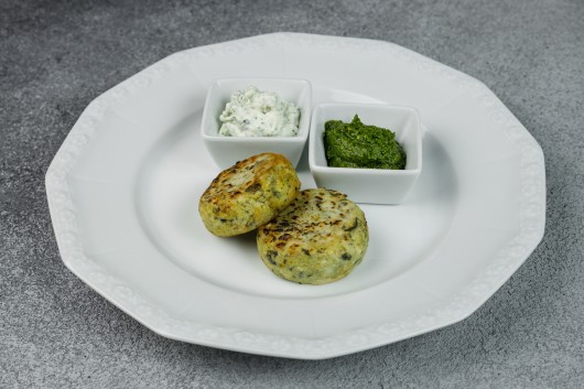 Творожники со шпинатом и соусом дзадзики